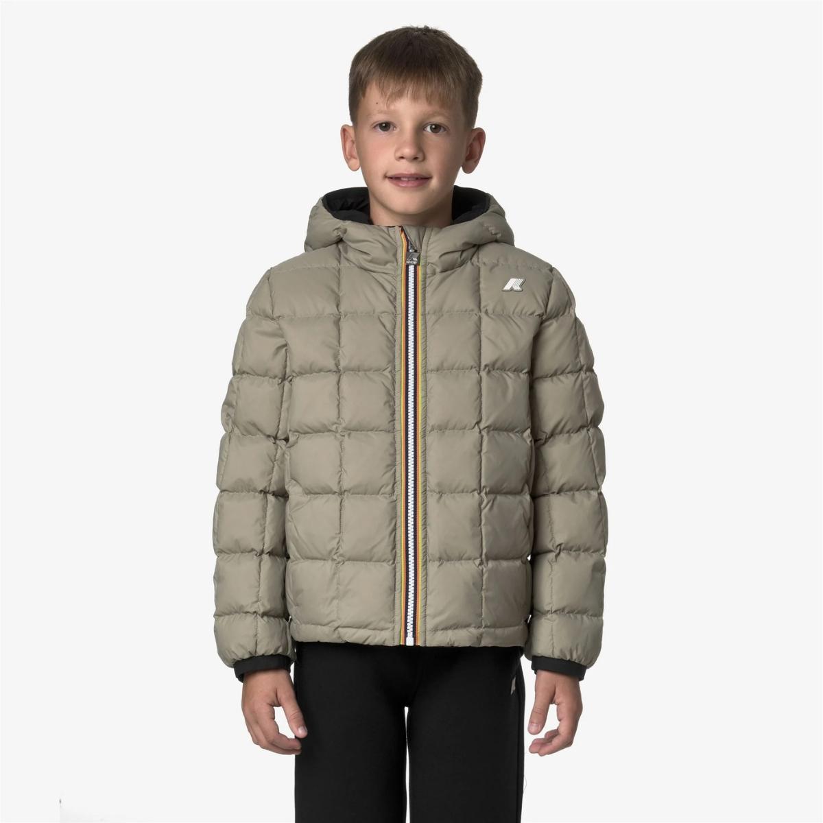 Giubbino da bambino Jack thermo reversibile in tessuto tecnico e imbottitura in piuma e piumino d'anatra