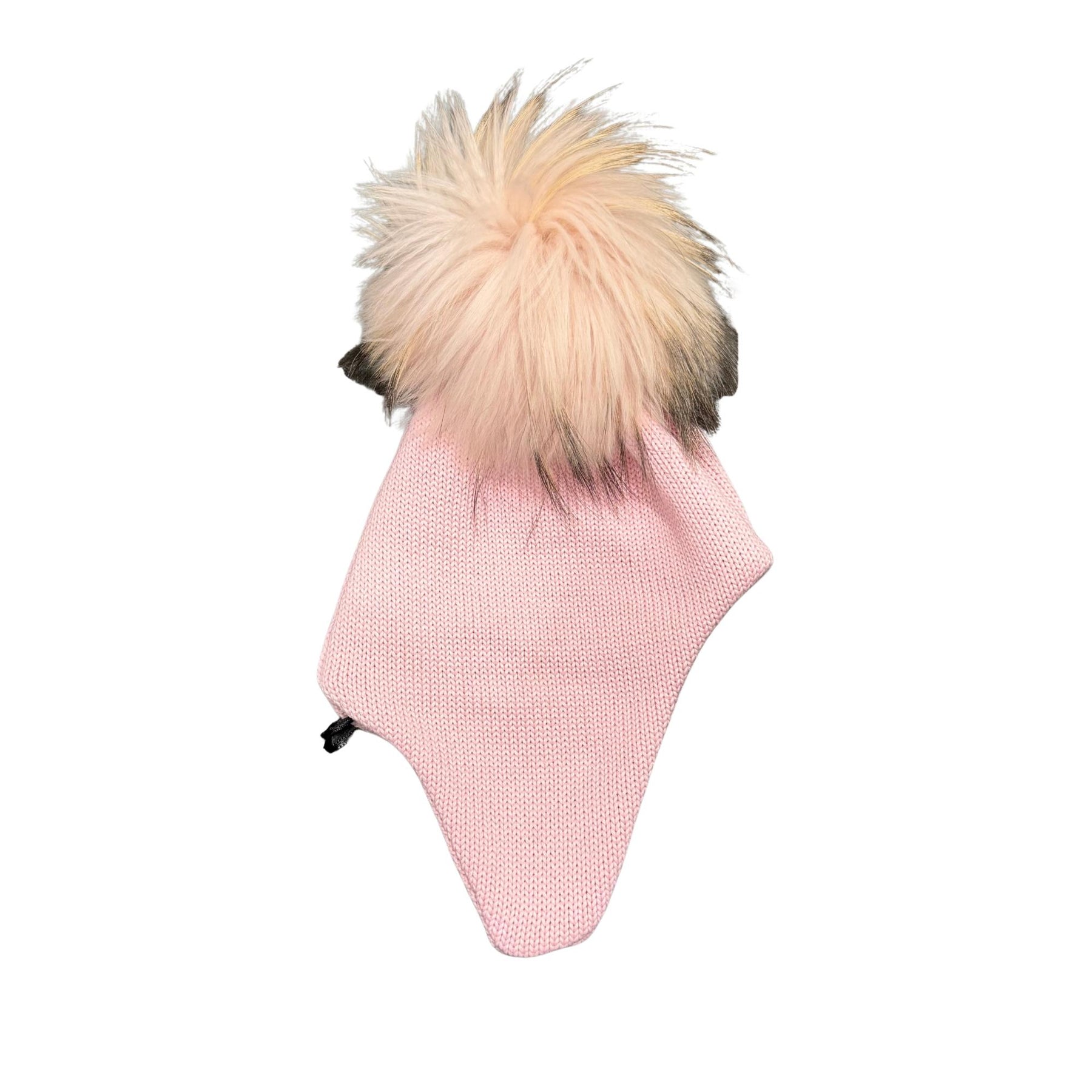 Cappello da bambini con copriorecchie in misto lana con ponpon in vera pelliccia Murmasky