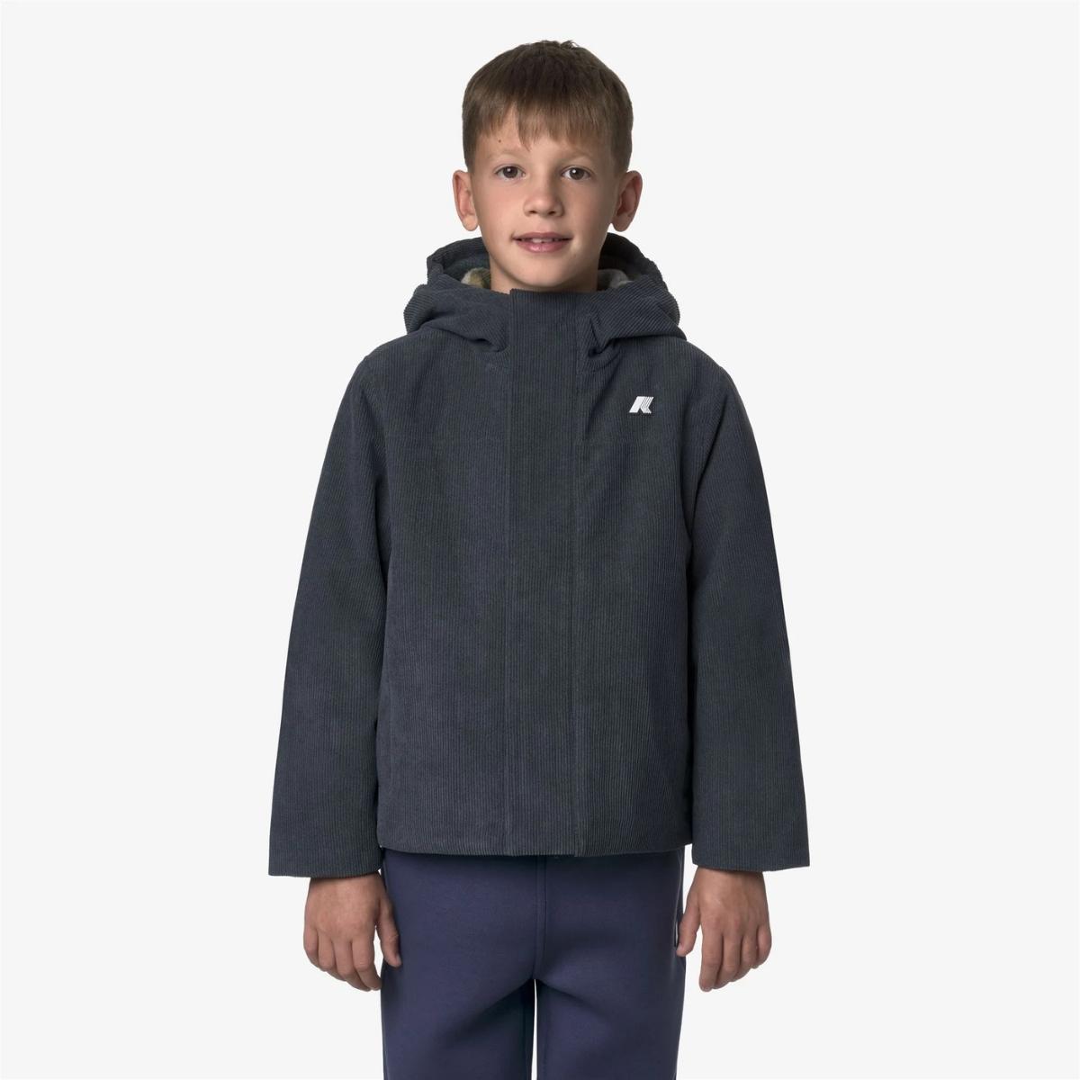 Giubbino da bambino Sharille in tessuto tecnico effetto denim con imbottitura in ecopelliccia tartan